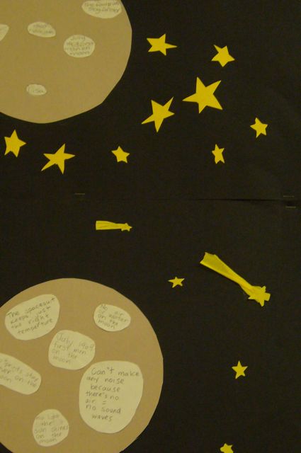 We represented our learning with large space pictures including stars, rockets and the sun.