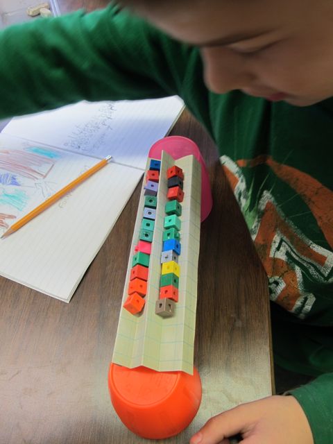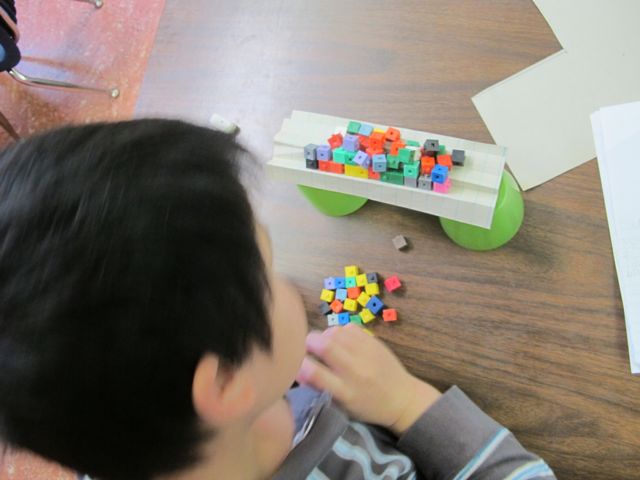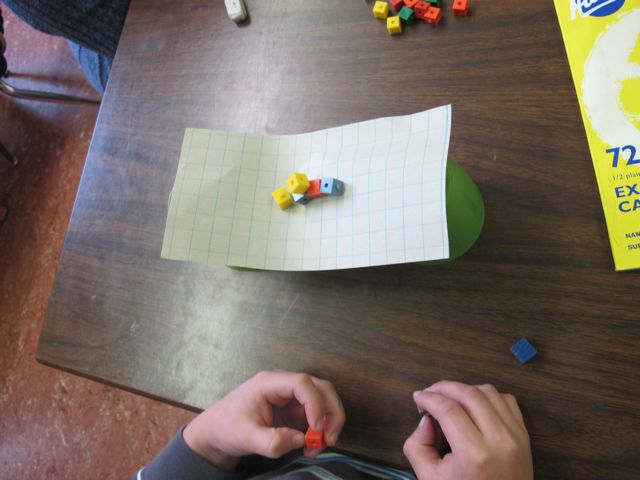 Then we folded the same paper like a fan and tried balancing cubes again.