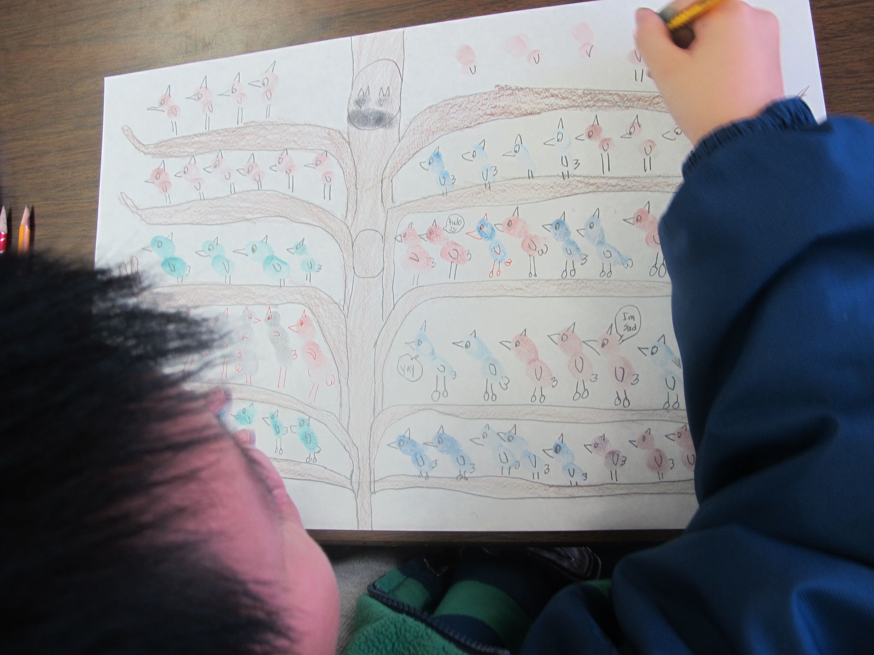 This fun art activity happened. . . Make a picture with a whole bunch of birds (know how many there are please) and the rest of us can admire the creativity of your picture and . . . practice our estimation skills. Just how many birds are there?