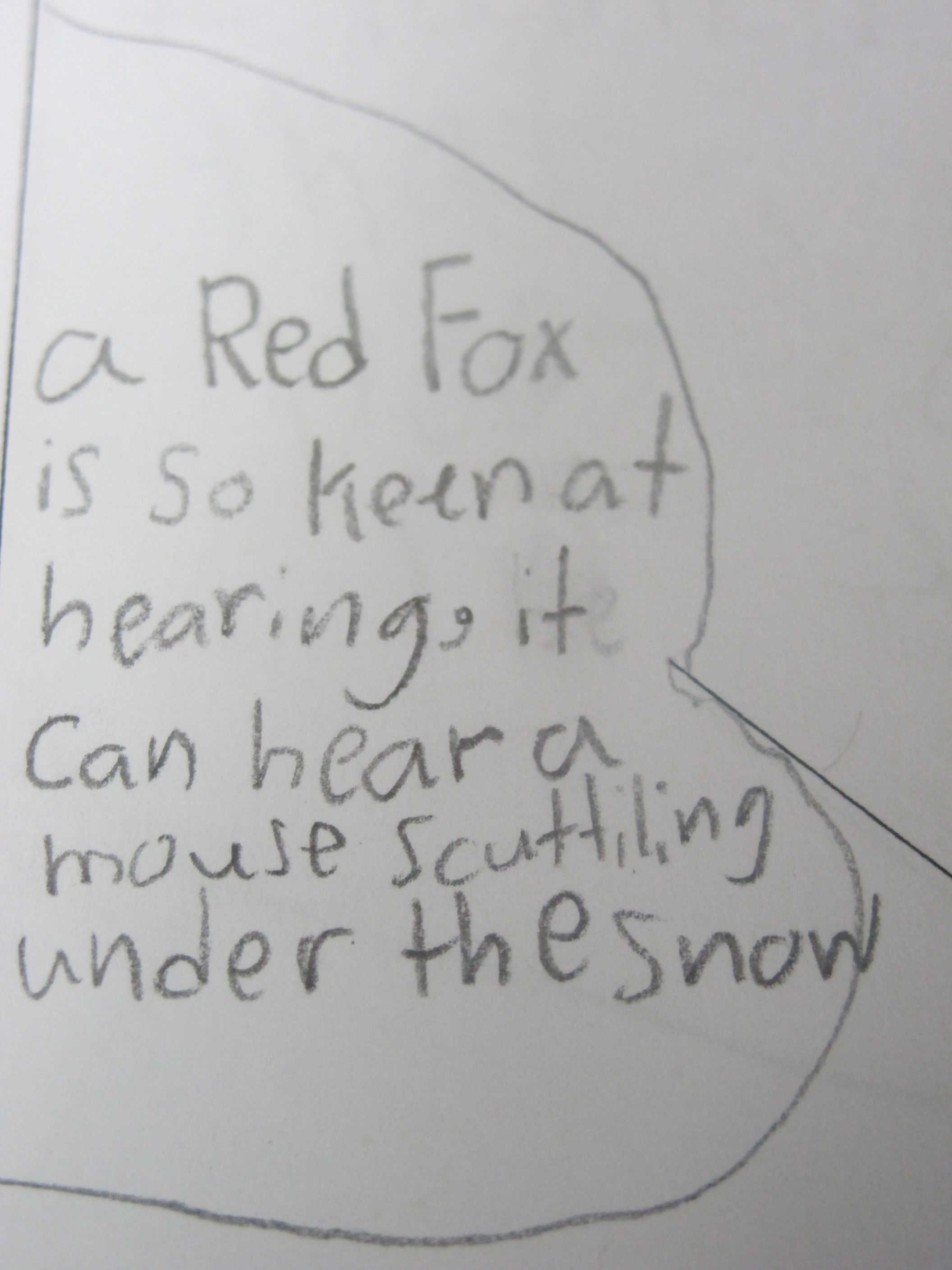 If you read the book, you might be most impressed as we were with the red fox and its keen hearing. Check out this link on Kate Messner’s blog where she shares a video of a real red fox listening for its prey under the snow.