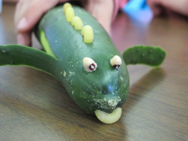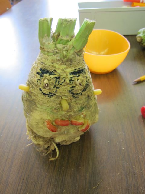 We appreciated the inspiration and happily selected from a variety of vegetables to create some odd vegetable creatures!