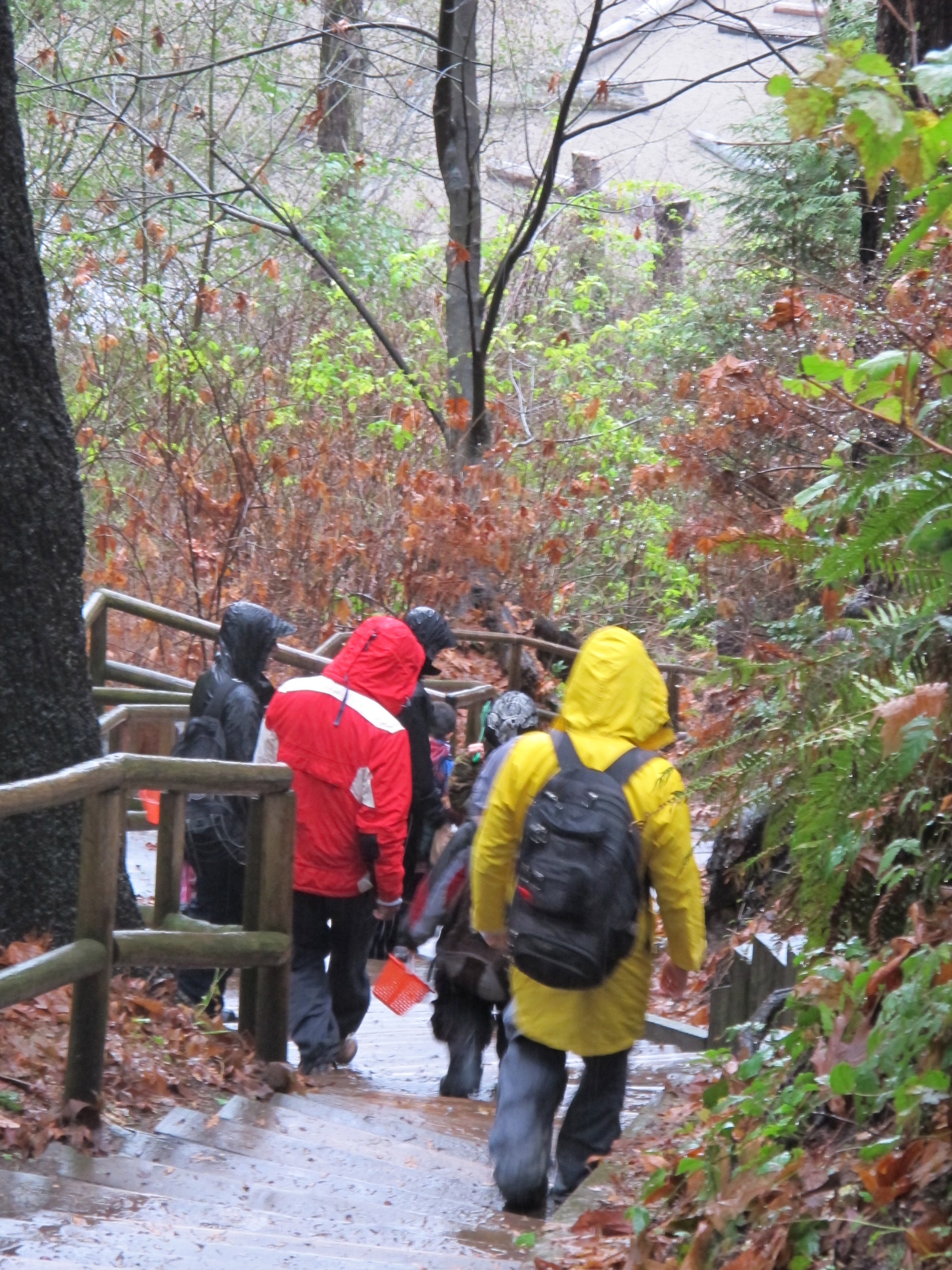 We had water from our drenched hats and hoods down to our soggy socks. It was cold. And it didn’t stop raining until we were on route to the vans. But what did I hear on the way out the door today?