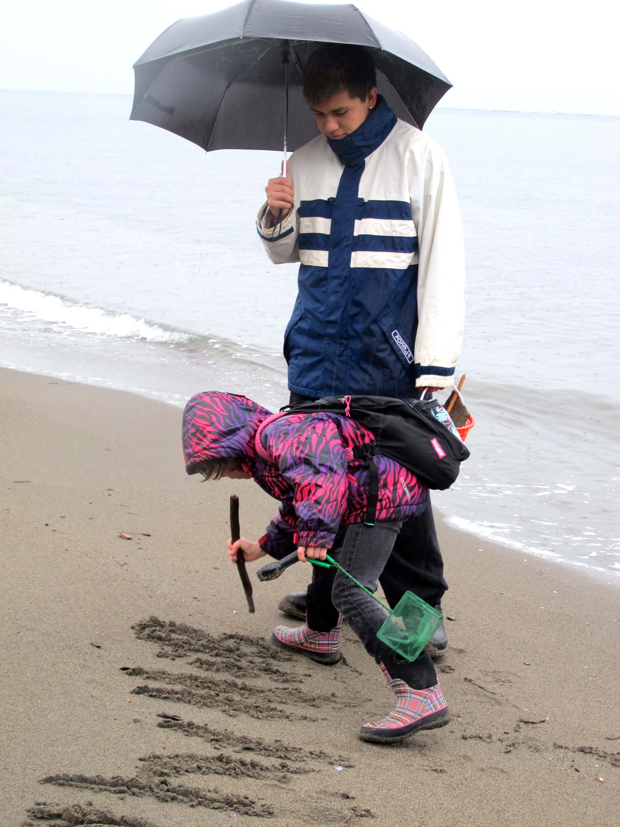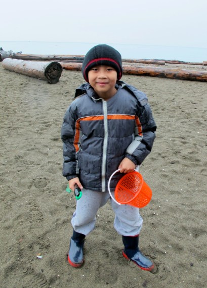 Today was hardly a day when you would look outside through the clouds, mist and rain and think, “What a perfect day for the beach!” But this is Vancouver. Rain is what it does here. And . . . we had a much anticipated field trip with our big buddies from John Oliver’s Take a Hike program. So for Division 5, today was a day where we did think “Beach Day!”