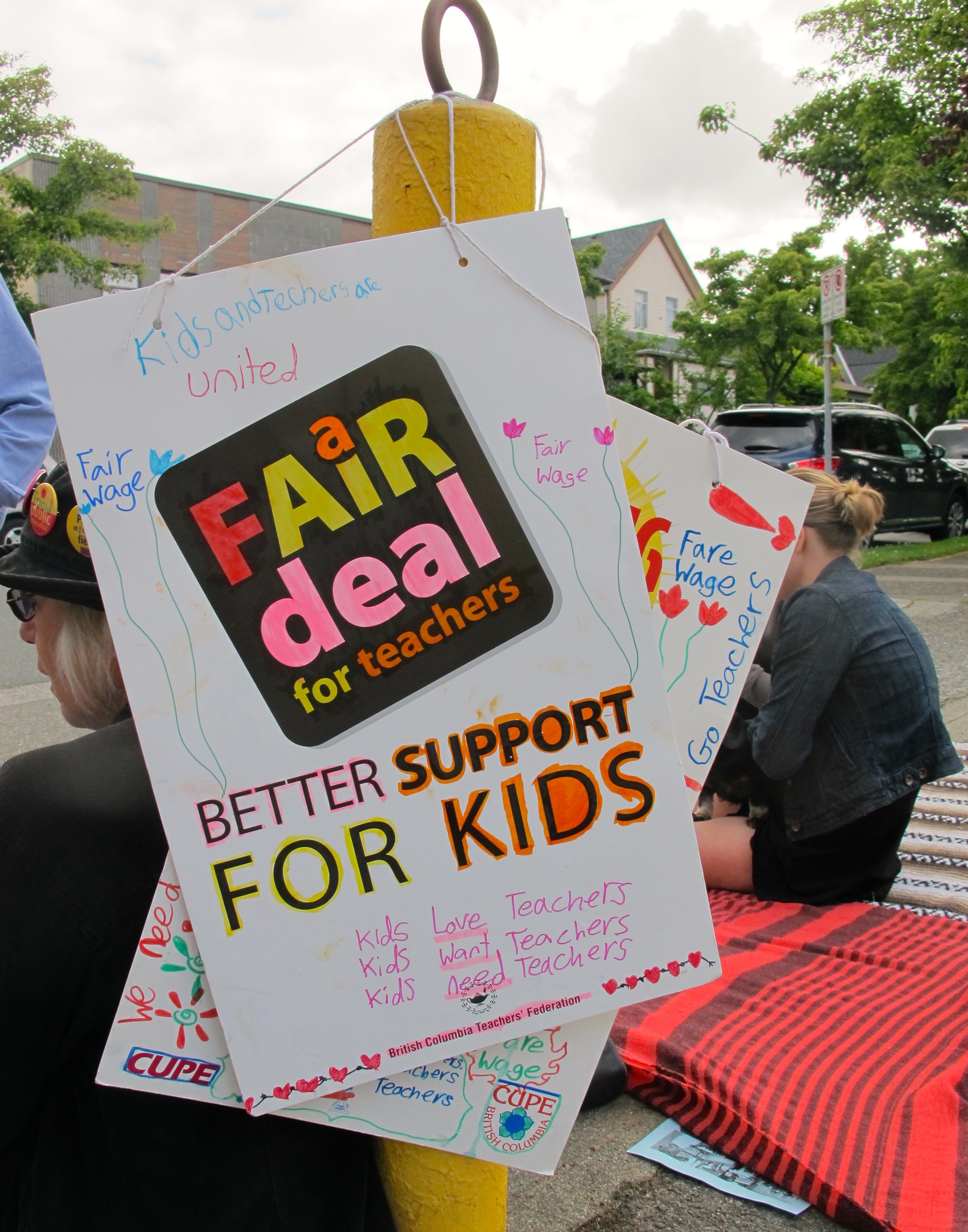 But school hasn’t really ended and summer hasn’t really started. We have been out of our classrooms here in B.C all week – picketing on the sidewalks because of a full scale teacher’s strike. Before this we had rotating strikes for three weeks – out one day a week. While rotating strikes were happening, we were partially locked out and our daily pay was reduced by ten percent each day.