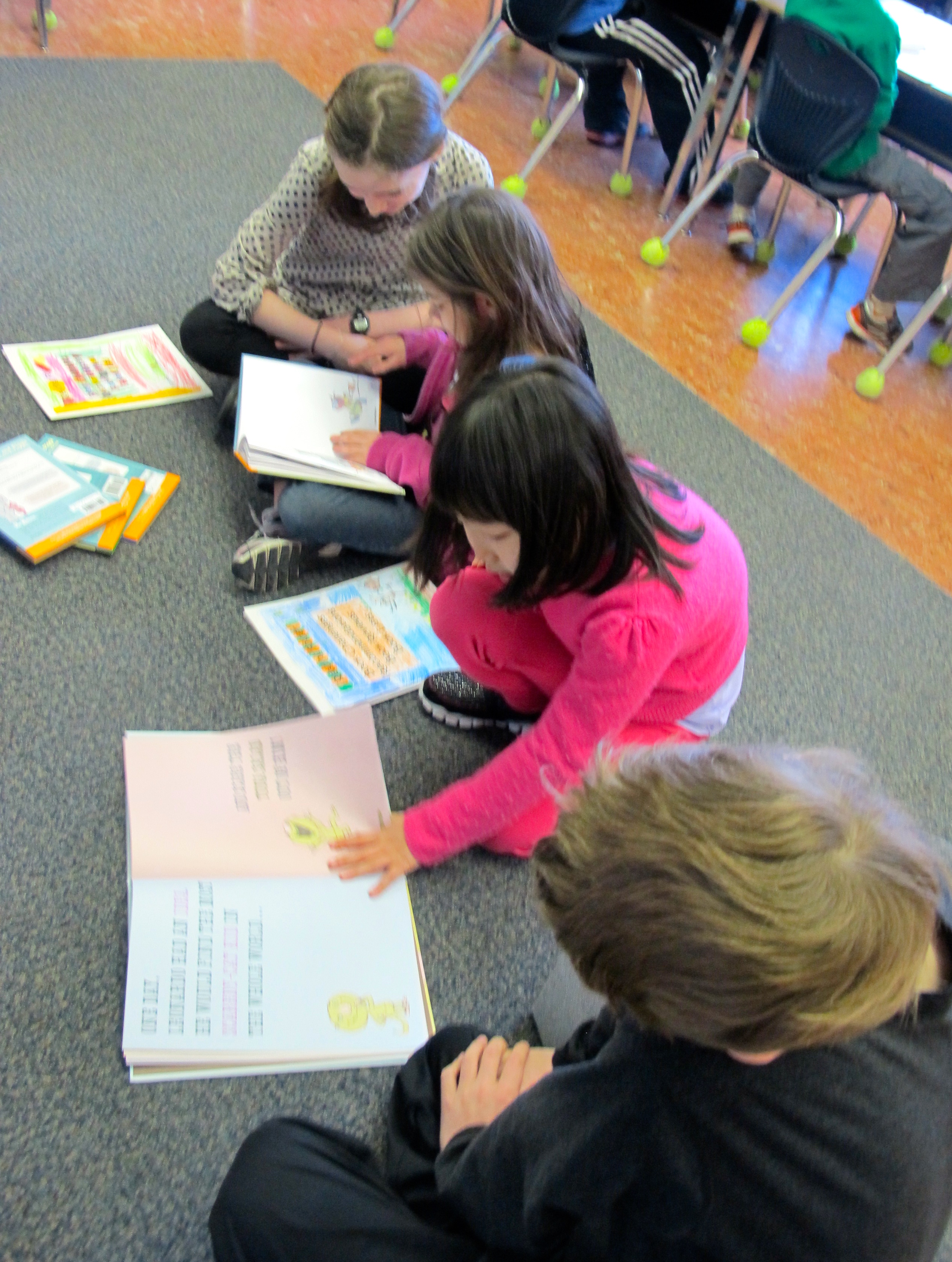 My children had a Professional Day on Monday so they came to my classroom with me. This was a wonderful experience all around. They were great helpers and my students loved to interact with them. All my most precious children in one room! Watching the students share their love of books with my children who have been raised on books was a most rewarding experience.
