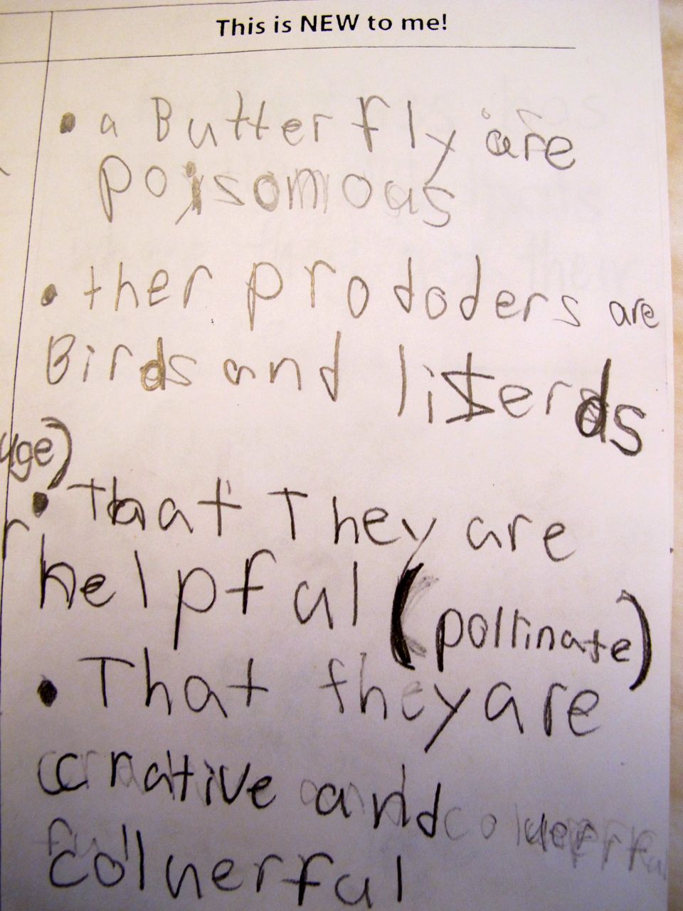 - Before you start reading, list everything you know about this specific creature (could be any topic but we were reading books about animals and insects)