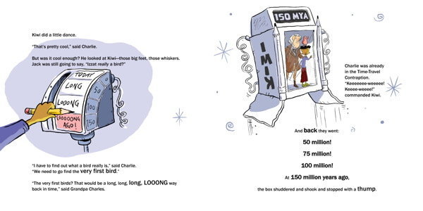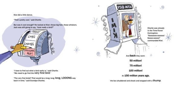 Lita Judge’s illustrations are so rich. They inform. They amuse. And they delight. Each dinosaur featured here is drawn next to something that children already know to allow them to imagine the exact size of the dinosaur. For example, the velociraptor was only the size of a modern day dog. A leaellynasaura? Two feet tall and wintered near the South Pole. Not all dinosaurs were towering huge “monsters”! But some sure were gigantic!