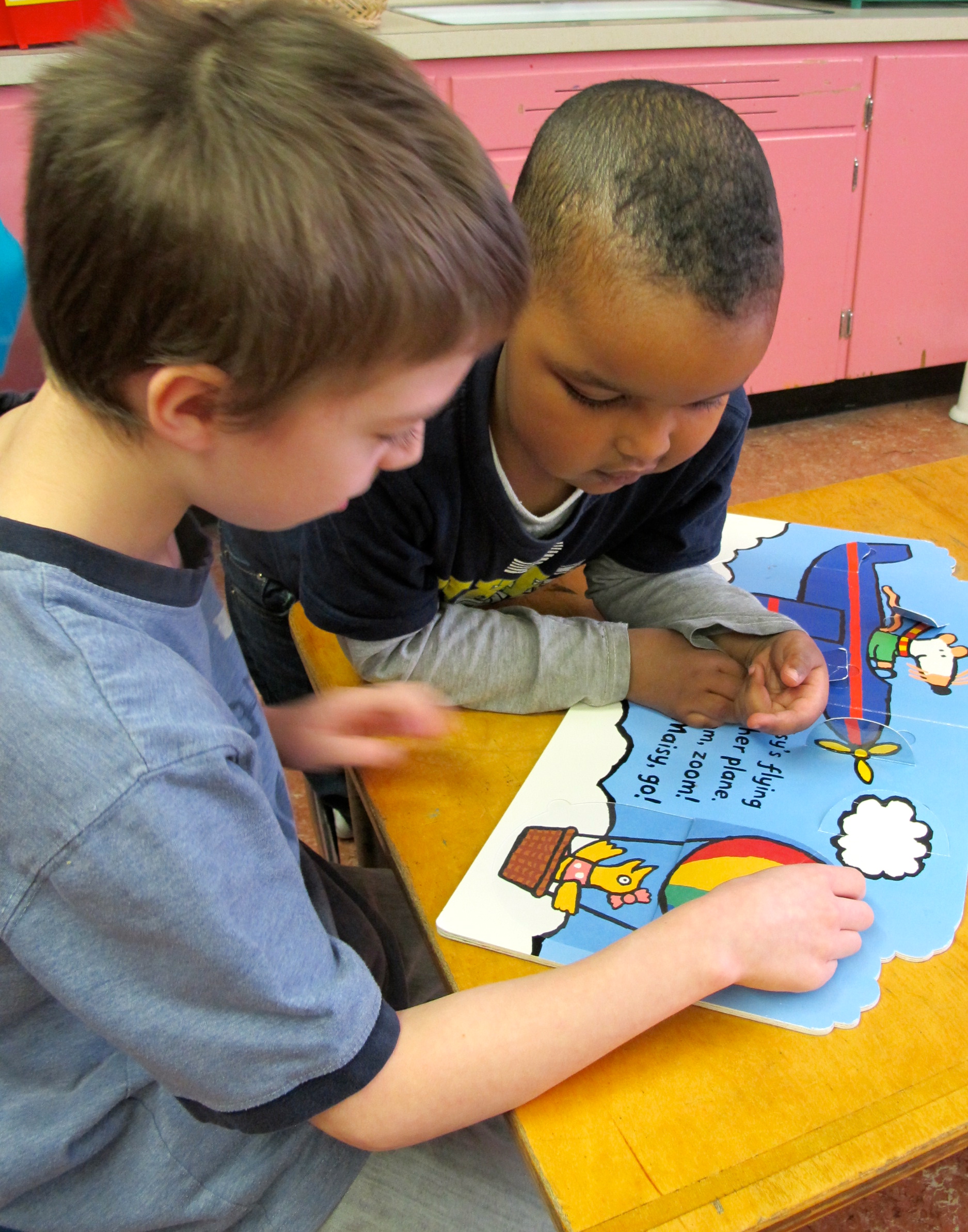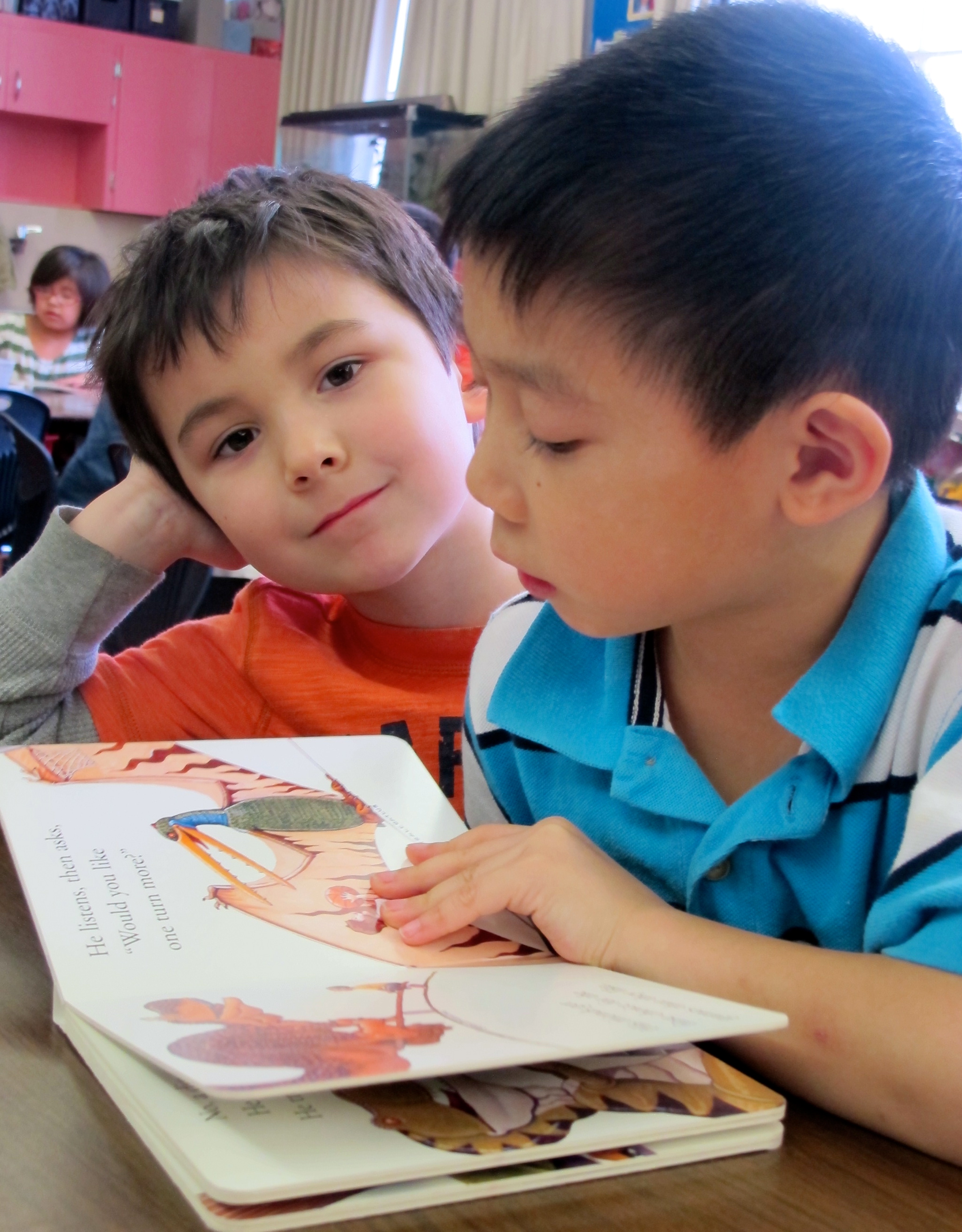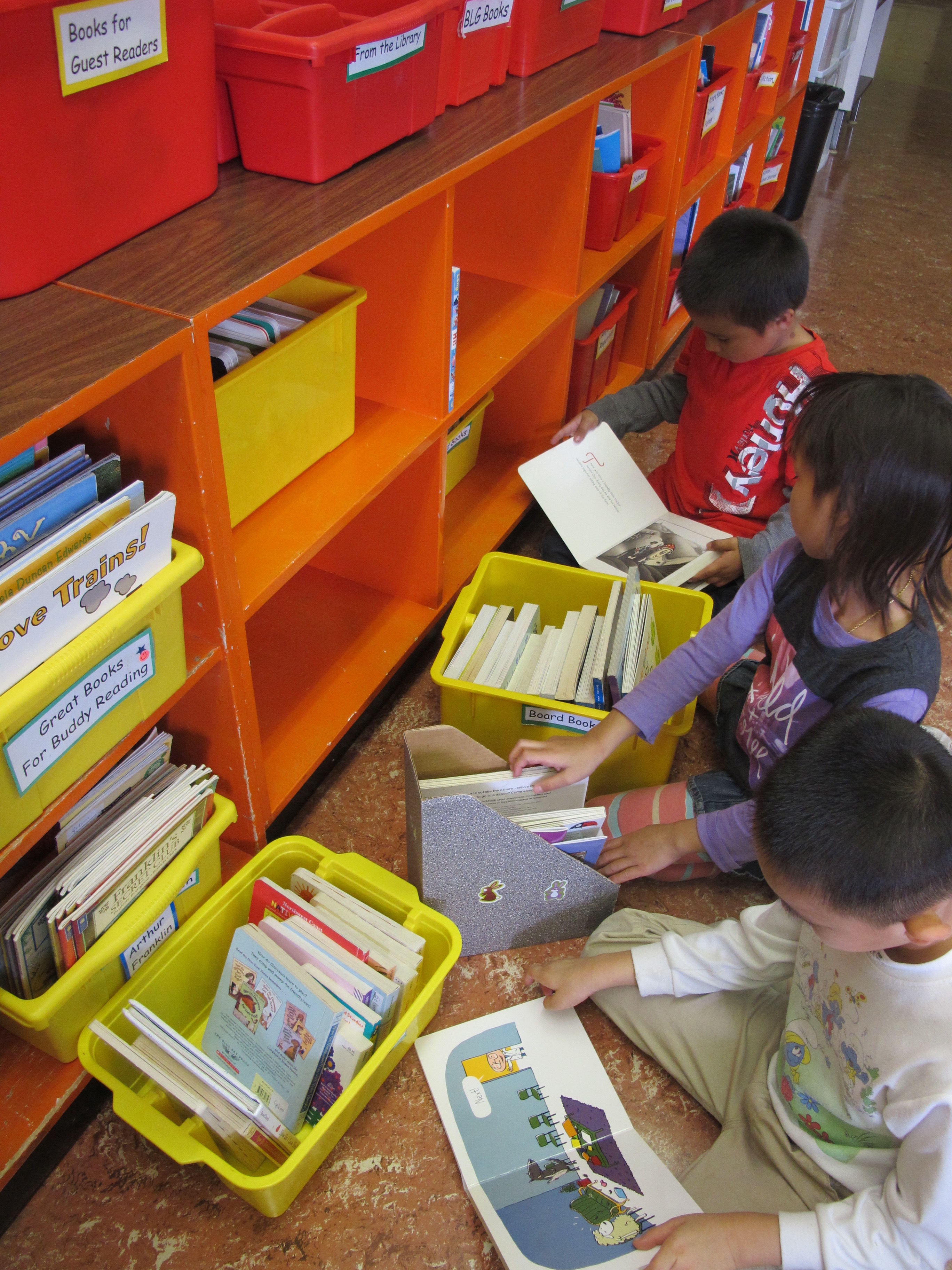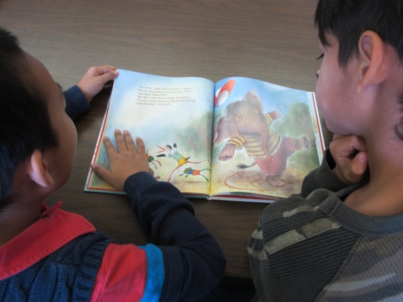The book love has caught on. The children are asking for “book time” right after lunch. What do I notice? Some sit individually with books and get immediately lost. Buddy reading happens naturally. Some children love to get into our bins of board books