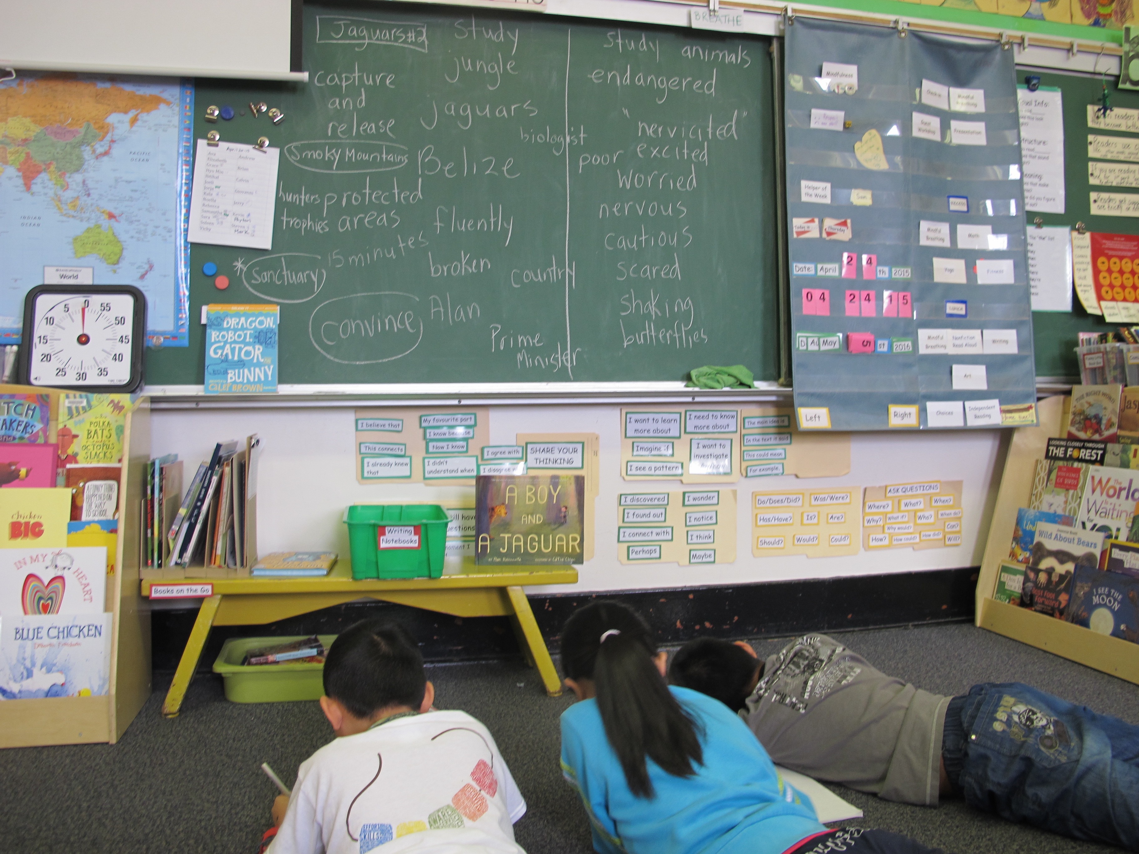Each week I share at least one reading photo of the week. I love this photo of Ms. B who works in my classroom (and her helpful page turning assistant) reading a book to a group of avid listeners.