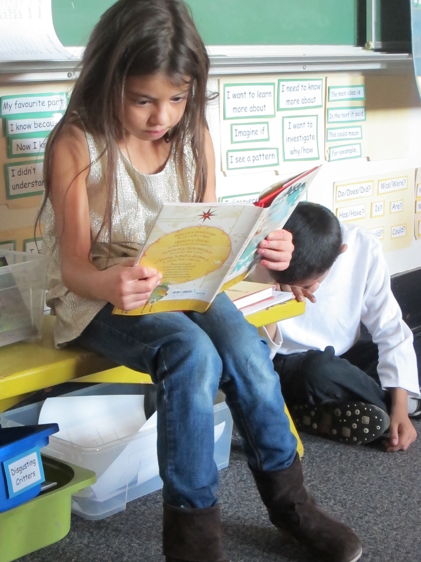 We have started Reading Workshop in full force. This group happily reads independently for 20-25 minutes and daily asks for more time to read. We have started to learn about genre through our picture book collection. This week we talked about fantasy stories, humour and books with rhyme and repetition. I have been trying to connect with each child to talk about books that are loved and what to read next. One important moment? When the child who told me he did not like to read and had no favourite books (on his reading survey) came to me on Friday and asked for my help in choosing a novel. The power of a reading community in a classroom full of books!