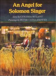 I picked this book off the library shelves because it is illustrated by one of my new very favourite illustrators Peter Catalanotto. He doesn’t illustrate books, he paints amazing scenes which accompany text. Then I saw that it was written by Cynthia Rylant. This book just had to be great. An Angel for Solomon Singer did not disappoint.