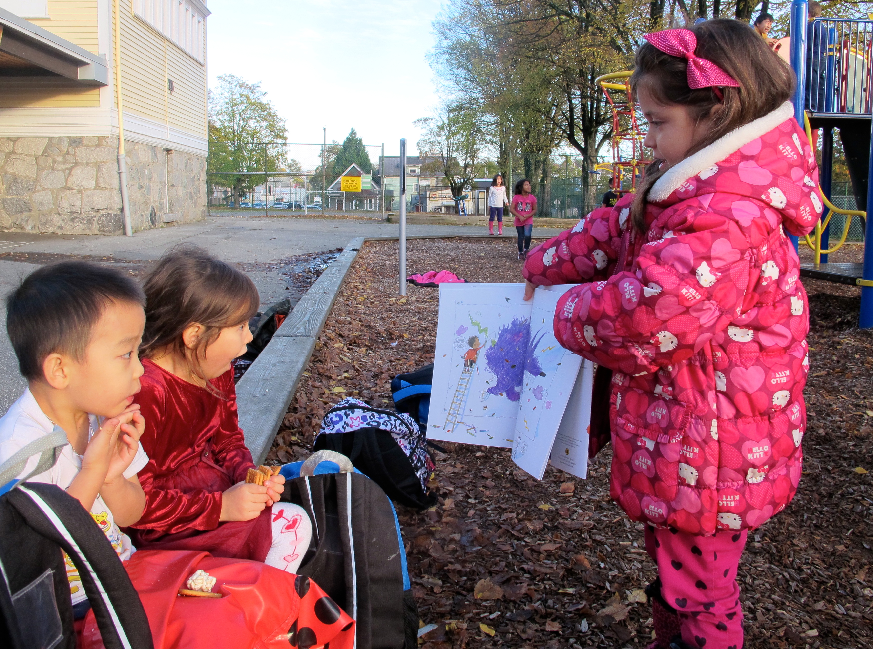 Rushing kids out the door heading out to do afternoon supervision, I still had the book in my hand. Near the playground, talk about the book continued:
