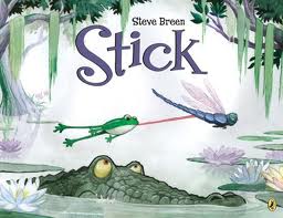 I just found this book at my local library. Stick is Steve Breen’s first picture book (but his talent for words and visual images has not been missed – he won the Pulitzer Prize for his editorial cartoons twice!) How far can one little frog travel? And how? Find out what happens when little Stick happens to get his long tongue stuck to a dragonfly. Up, up and away . . . Silly, delightfully preposterous and gorgeous bird’s (in this case frog!) eye view of town, city and swamp.