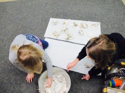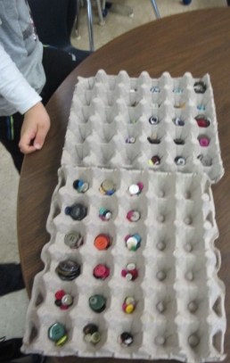 We did counting collections this week and used lots of spaces and containers to count a myriad of things: seashells, buttons, bread ties, bottle caps, etc.