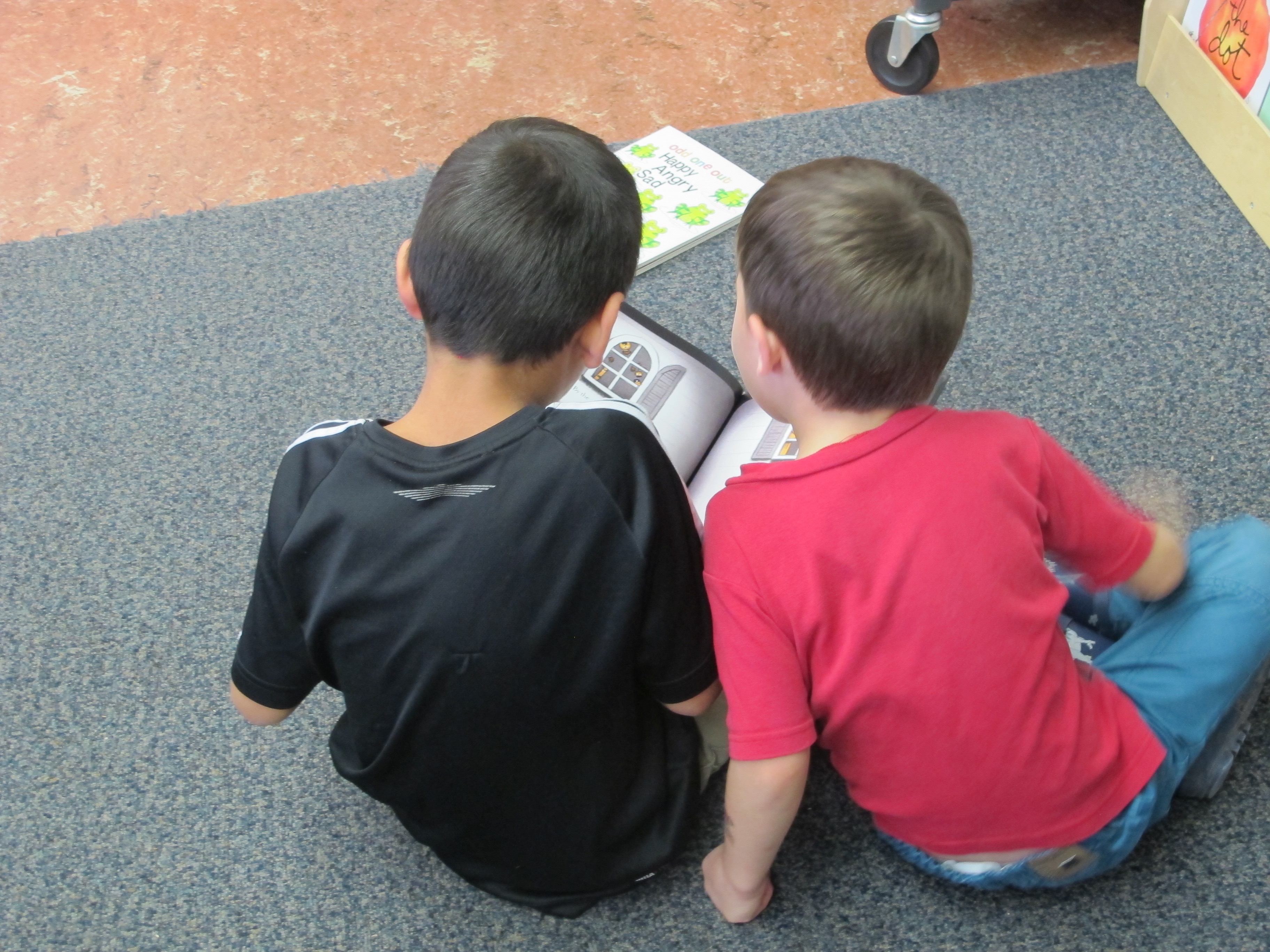 These children love books. They love stories. They love to be read to. They love to sit with a book that we have read together and in twos or threes retell or reread the story. I think I have heard Chris Haughton‘s Shh! We have a Plan about thirty times. I might have it memorized! Such an engaging fun book to read and feel successful.
