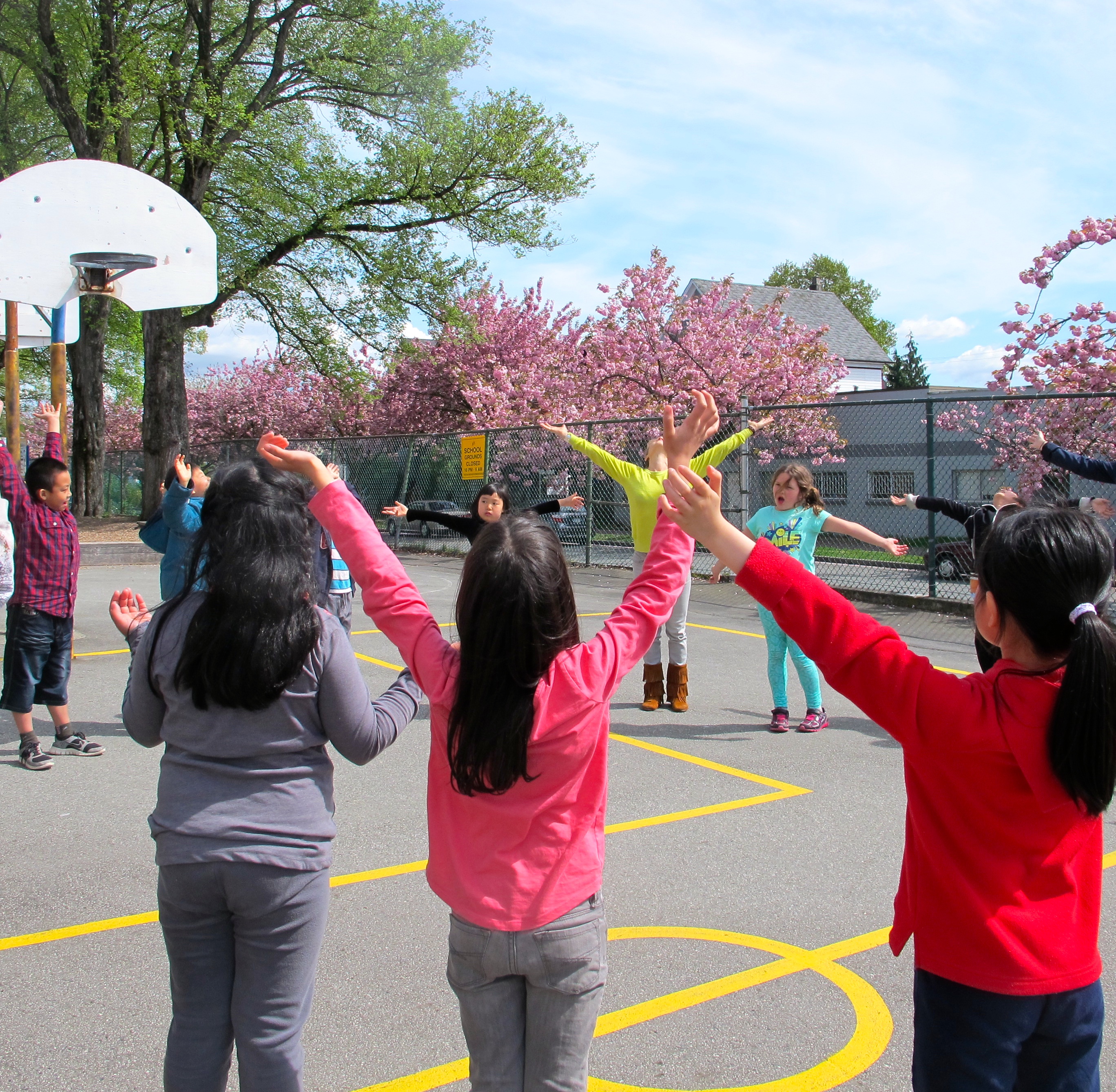What great learning happened when we invited a K class from another school to spend almost an entire day with us. We did yoga, art, outside play and buddy reading. Thank you Ms. Hales! I hope she will visit with her new class this year!